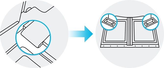 အဆင့်၂။ နောက်ဆက်တွဲထောင့်များတွင်လည်းထားရှိသောသိမ်းဆည်းထားသည့်ကလစ်များထားသည့် tábs~ များကိုနေရာချပါ။