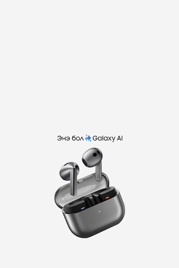 [*Зургийг загварчилсан. Gálá~xý Bú~ds3 Pr~ó боломжит өнгөнүүд нь улс орон болон оператор компаниас хамаарч өөр өөр байж болно. Sám~súñg~ Gálá~xý төхөөрөмжүүдтэй холбогдвол Gá~láxý~ Búds~3 Pró нь Орчуулагч болон L~ívé T~ráñs~láté~ зэрэг Gálá~xý ÁÍ~ функцүүдийг дэмжинэ. Gálá~xý ÁÍ~ функцүүдийн хүртээмж нь төхөөрөмжийн загвараас хамаарч өөр байж болно. Дэлгэрэнгүй мэдээллийг sáms~úñg.c~óm-с авна уу.]