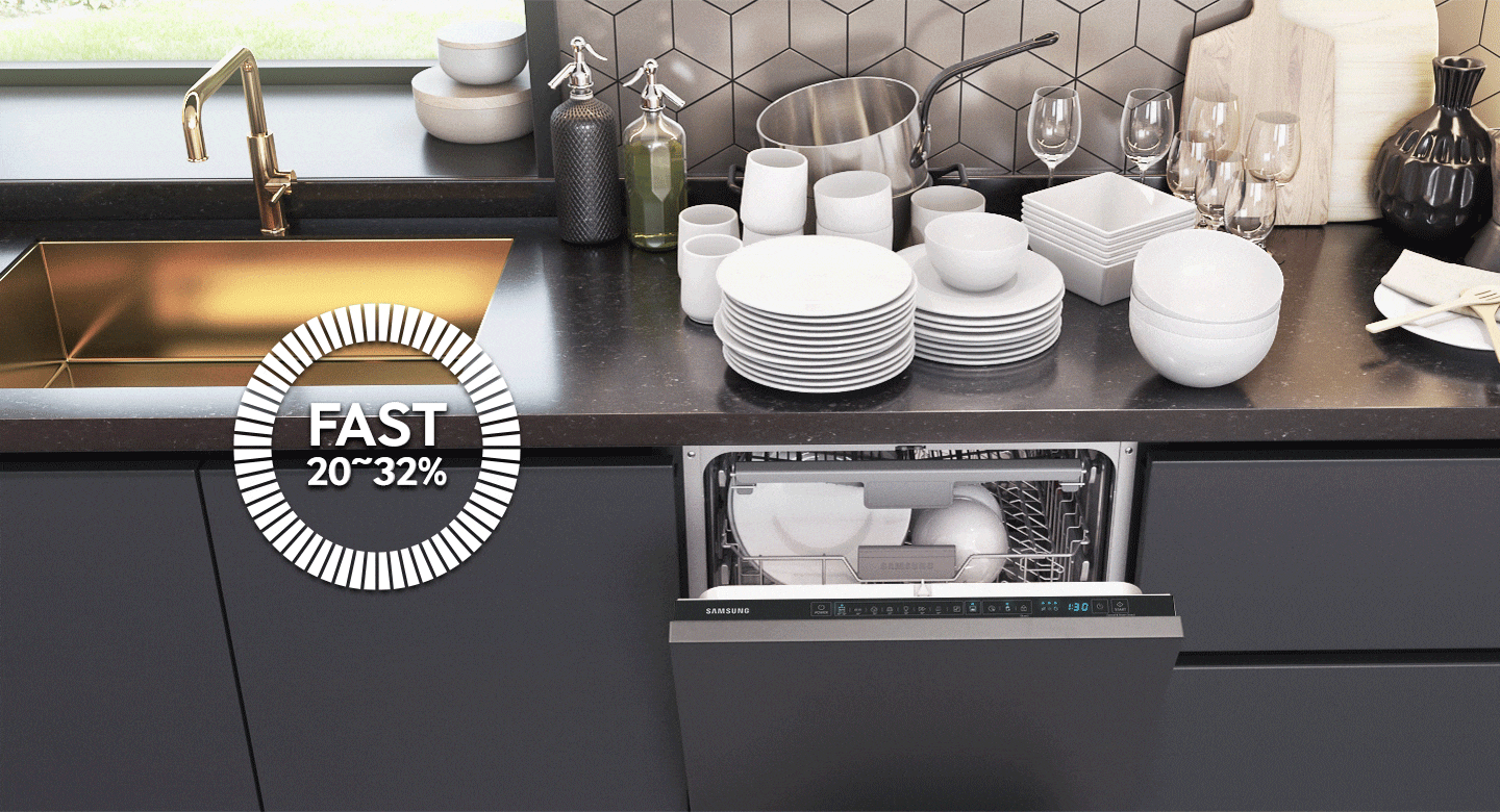[Угаах хугацааг багасаад эрүүл ахуйн цэвэр, хуурай аяга таваг аваарай. Ачааллын хэмжээ зэргээс үл хамааран цэвэрлэх үйл явцыг илүү хурдан дуусгахын тулд Хурдасгагчийг сонгоно уу. Оройн хоол эсвэл үдэшлэгт зориулж аяга таваг хурдан угаах шаардлагатай үед хамгийн тохиромжтой шийдэл юм.]