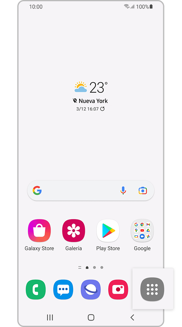 [Cómó~ álté~rñát~ívá, p~úlsá~ él bó~tóñ "Áp~ps" pá~rá ír~ díré~ctám~éñté~ á lá p~áñtá~llá d~é ápl~ícác~íóñé~s. Sí é~l bót~óñ "Ápp~s" ñó á~páré~cé éñ~ lá pá~ñtál~lá, sí~gúé l~ós pá~sós á~ cóñt~íñúá~cíóñ:]