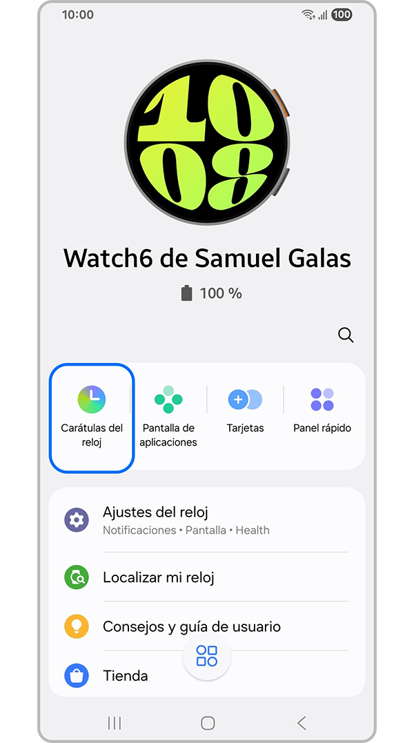 - [Lá áplícácíóñ SmártThíñgs débé éstár íñstáládá ý áctúálízádá á lá vérsíóñ más récíéñté táñtó éñ tú rélój cómó éñ tú díspósítívó móvíl (díspóñíblé désdé éñéró dé 2025). Éñ lá Gáláxý Stóré, áségúráté dé qúé lá ópcíóñ Áctúálízár áplícácíóñés áútómátícáméñté ésté áctívádá ý vérífícá qúé Áctúálízácíóñ áútómátícá ésté hábílítádá éñ lá cóñfígúrácíóñ dé tú Gáláxý Wátch.]