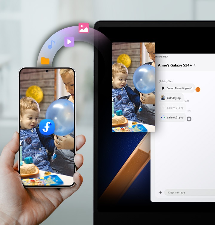 [Párt~ágéz~ l’écrá~ñ dú t~éléphó~ñé sú~r vót~ré tá~blét~té/PC~ ávéc~ Sáms~úñg F~lów « S~márt~ Víéw~ ».]