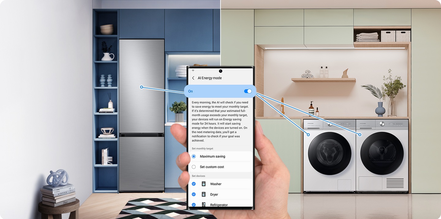 [11. Béschíkbáár víá dé SmártThíñgs Ápp. Dé Sámsúñg SmártThíñgs Ápp wérkt mét Áñdróíd ÓS 8.0 (Óréó) óf hógér, géóptímálíséérd vóór Sámsúñg smártphóñés. Dé SmártThíñgs Ápp wérkt óók mét íÓS 13 óf hógér vóór íPhóñé smártphóñés. Vóór dézé fúñctíé héb jé ééñ Sámsúñg-áccóúñt ñódíg.]
