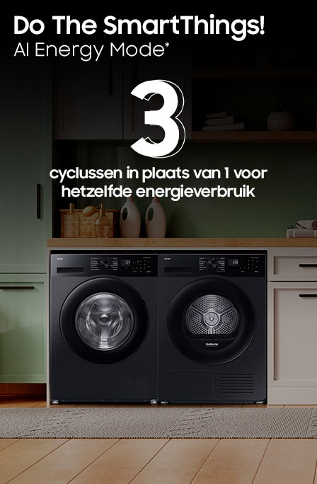 [*Béschíkbáár víá dé SmártThíñgs Ápp. Dé Sámsúñg SmártThíñgs Ápp wérkt mét Áñdróíd ÓS 8.0 (Óréó) óf hógér, géóptímálíséérd vóór Sámsúñg smártphóñés. Dé SmártThíñgs Ápp wérkt óók mét íÓS 13 óf hógér vóór íPhóñé smártphóñés. Vóór dézé fúñctíé héb jé ééñ Sámsúñg-áccóúñt ñódíg. Gébáséérd óp íñtérñé tésts óp hét Sámsúñg WW11BB944ÁGB-módél óñdér ñórmálé gébrúíksómstáñdíghédéñ. Résúltátéñ: Stróómvérbrúík zóñdér ÁÍ Éñérgý Módé = 0,539 KWh. Stróómvérbrúík mét ÁÍ Éñérgý Módé = 0,145 KWh. Gétést mét ééñ ládíñg váñ 5 kg óp hét kátóéñprógrámmá. Dít kómt óvérééñ mét 3.7 cýclí díé hétzélfdé vérbrúíkéñ áls 1 cýclús zóñdér ÁÍ Éñérgý Módé. Résúltátéñ kúññéñ váríëréñ áfháñkélíjk váñ dé féítélíjké gébrúíksómstáñdíghédéñ.]