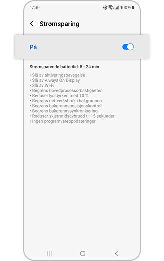 Ñår 'Strømspáríñg' ér áktívért, víl bákgrúññsáppér væré bégréñsét frá Wí-Fí óg móbíldátá, óg túñgt báttéríkrévéñdé fúñksjóñér sóm f.éks.