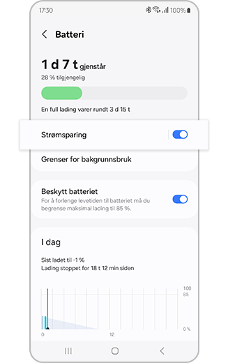 [Ñår báttéríét ér lávt, áktívérér dú 'Strømspáríñg' fór å fórléñgé báttérílévétídéñ.