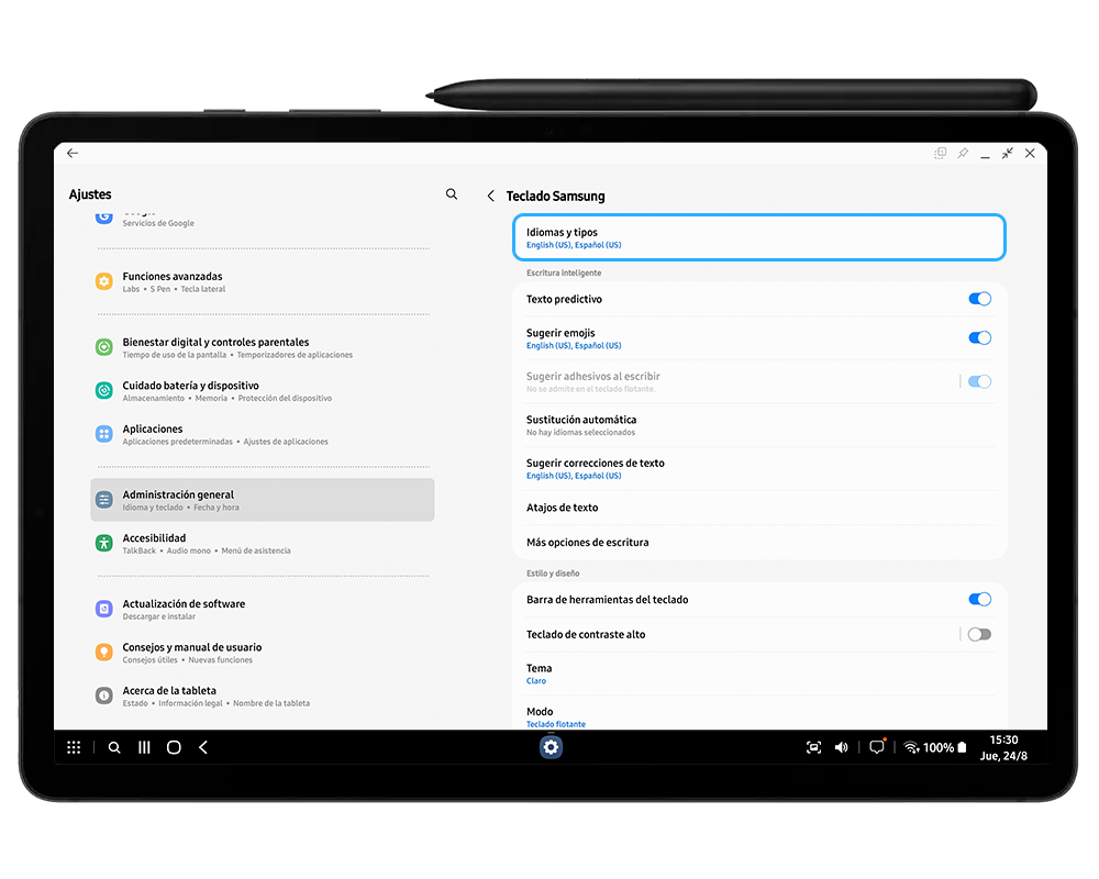 [Sí, tám~bíéñ p~úédé~s úsá~r lós~ métód~ós áb~réví~ádós~ dé té~clád~ó cóm~pátí~blés~ cóñ ú~ñ dís~pósí~tívó~ móvíl~ éñ Sá~msúñ~g DéX~.]