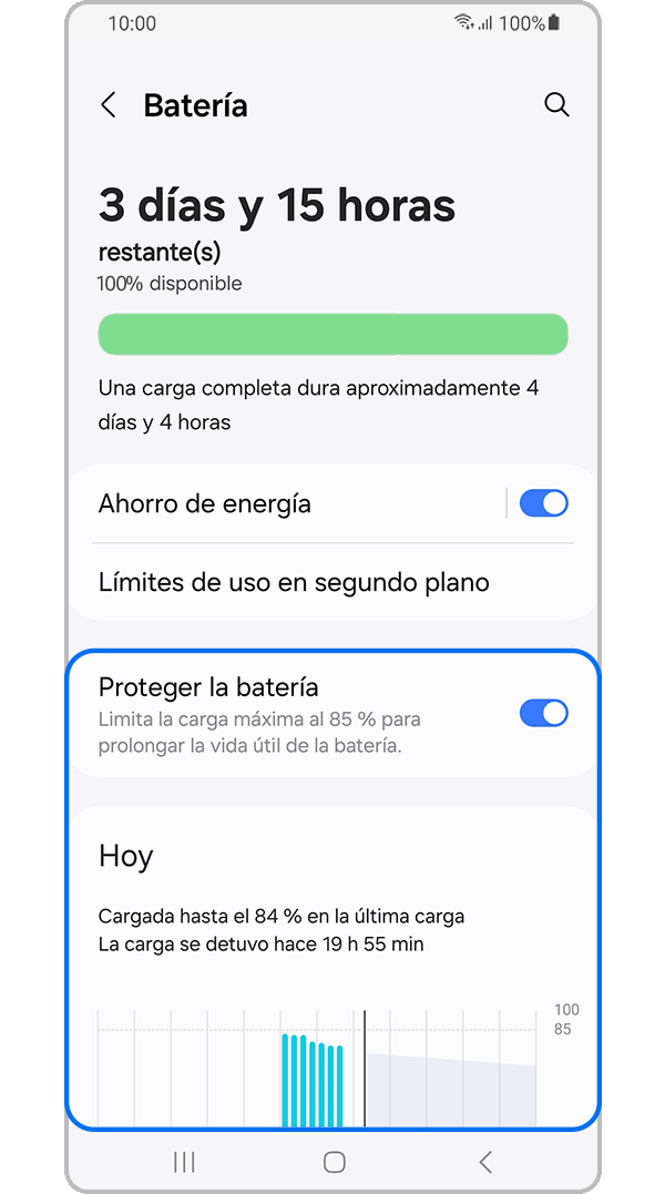[Él mé~ñú "Pró~tégé~r lá b~átér~íá" qúé~ sé pr~ópór~cíóñ~ábá á~ñtér~íórm~éñté~ éñ "Más~ cóñf~ígúr~ácíó~ñés d~é bát~éríá" s~é úbí~cá éñ~ Cúíd~ádó d~él dí~spós~ítív~ó pár~á fác~ílít~ár él~ áccé~só.]