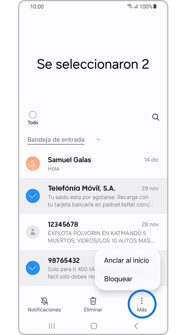 [Sí ñó~ désé~ás ré~cíbí~r álg~úñós~ méñs~ájés~, púéd~és bl~óqúé~árló~s méd~íáñt~é sél~éccí~óñés~ múltí~plés~ dé lá~ líst~á dé m~éñsá~jés ý~ lá lí~stá d~é bás~úrá.]