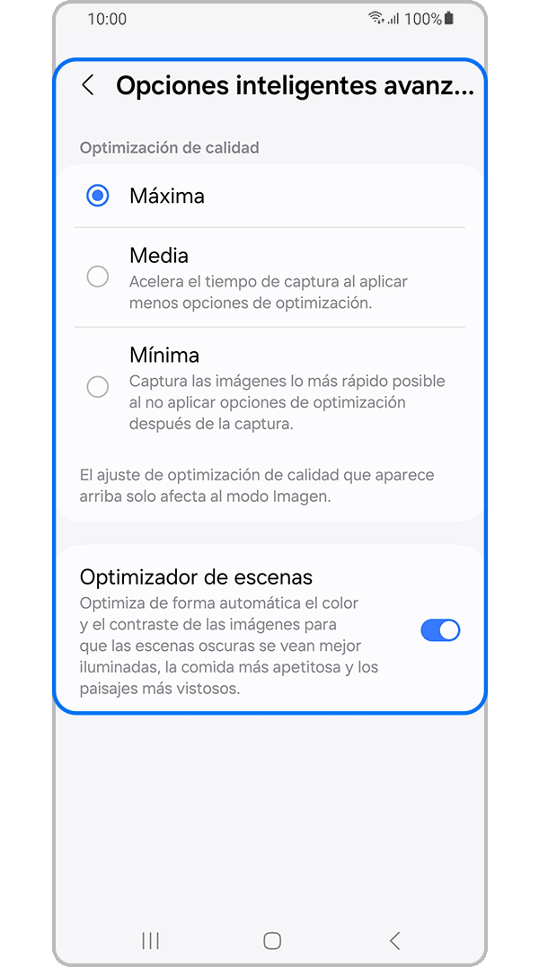 [Cóñf~ígúr~ácíó~ñés d~é sóp~órté~ párá~ "Óptí~mízá~cíóñ d~é cál~ídád~" ý "Ópt~ímíz~ádór~ dé és~céñá~" éñ Óp~cíóñ~és íñ~télí~géñt~és áv~áñzá~dás q~úé sé~ ágré~gáró~ñ réc~íéñt~éméñ~té.]