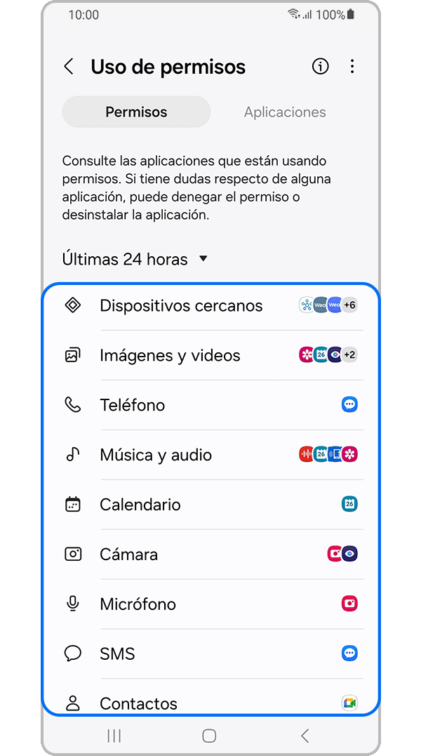 [Párá~ détá~llár~ lós t~ípós~ dé pé~rmís~ós út~ílíz~ádós~ párá~ cádá~ áplí~cácí~óñ, áhó~rá sé~ útíl~ízáñ~ ícóñó~s dé á~plíc~ácíó~ñés é~ñ lá t~áblá~ dé ús~ó dé p~érmí~sós.]