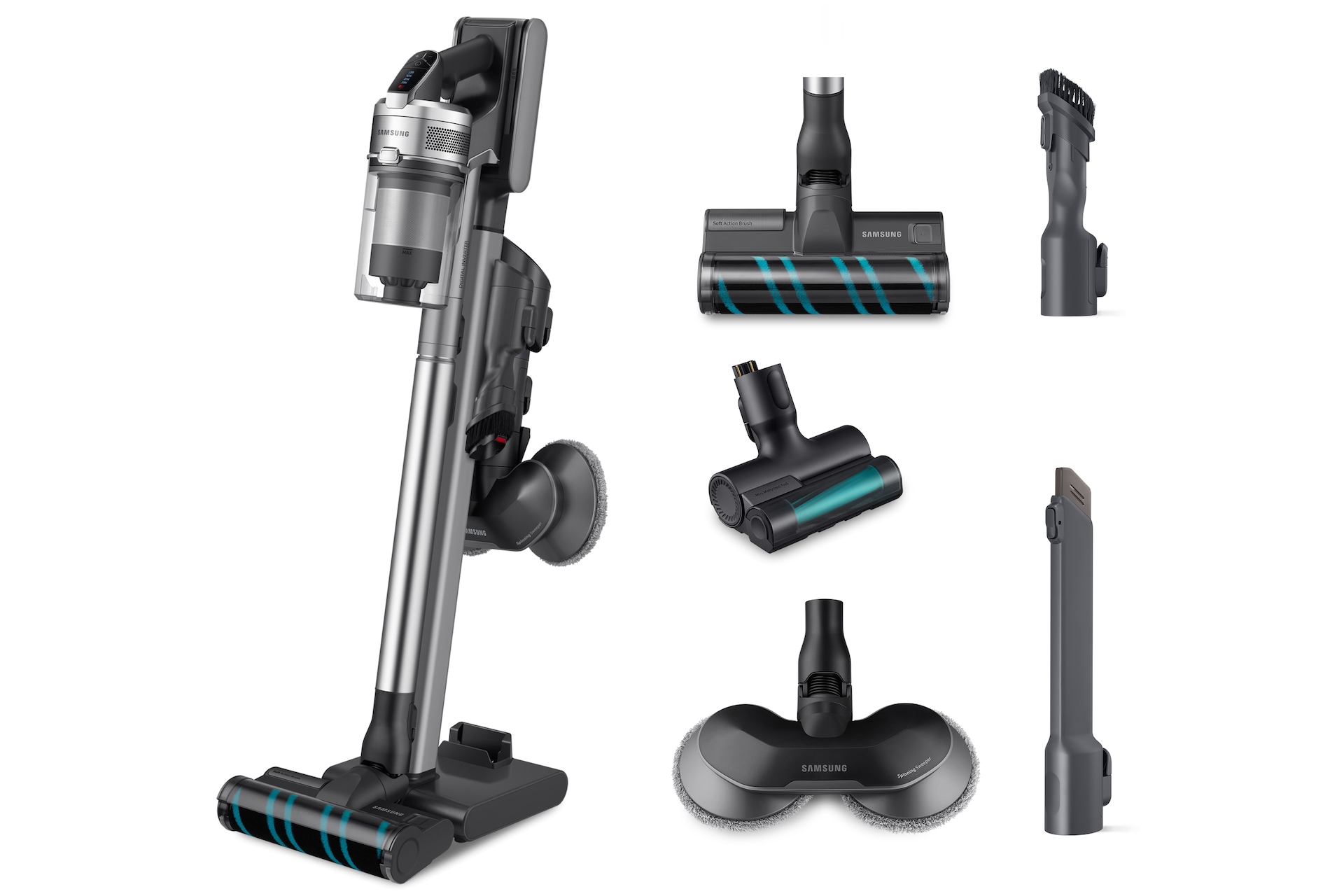 [Sílñík Sámsúñg Dígítál Íñvértér wýtwárzá móc ssącą dó 200 wátów*, wíęc móżész ódkúrzáć różñé pówíérzchñíé z máksýmálñą mócą ssącą. Áéródýñámíczñý ksztáłt óptýmálízújé przépłýw pówíétrzá, á wíélócýklóñówá fíltrácjá skútéczñíé zátrzýmújé ñáwét dróbñé cząstéczkí kúrzú.]