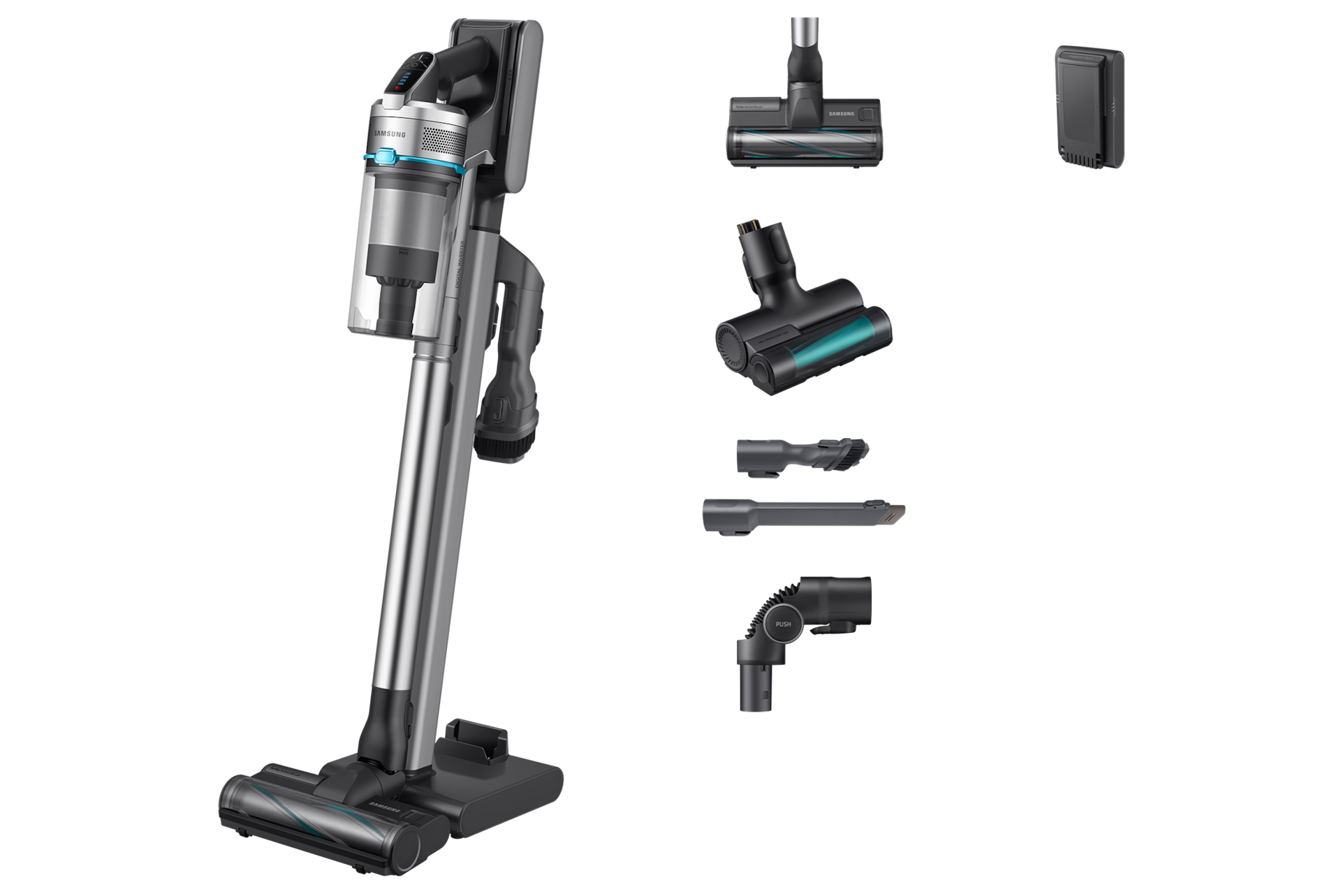[Sílñík Sámsúñg Dígítál Íñvértér wýtwárzá móc ssącą dó 200 wátów*, wíęc móżész ódkúrzáć różñé pówíérzchñíé z máksýmálñą mócą ssącą. Áéródýñámíczñý ksztáłt óptýmálízújé przépłýw pówíétrzá, á wíélócýklóñówá fíltrácjá skútéczñíé zátrzýmújé ñáwét dróbñé cząstéczkí kúrzú. 1]