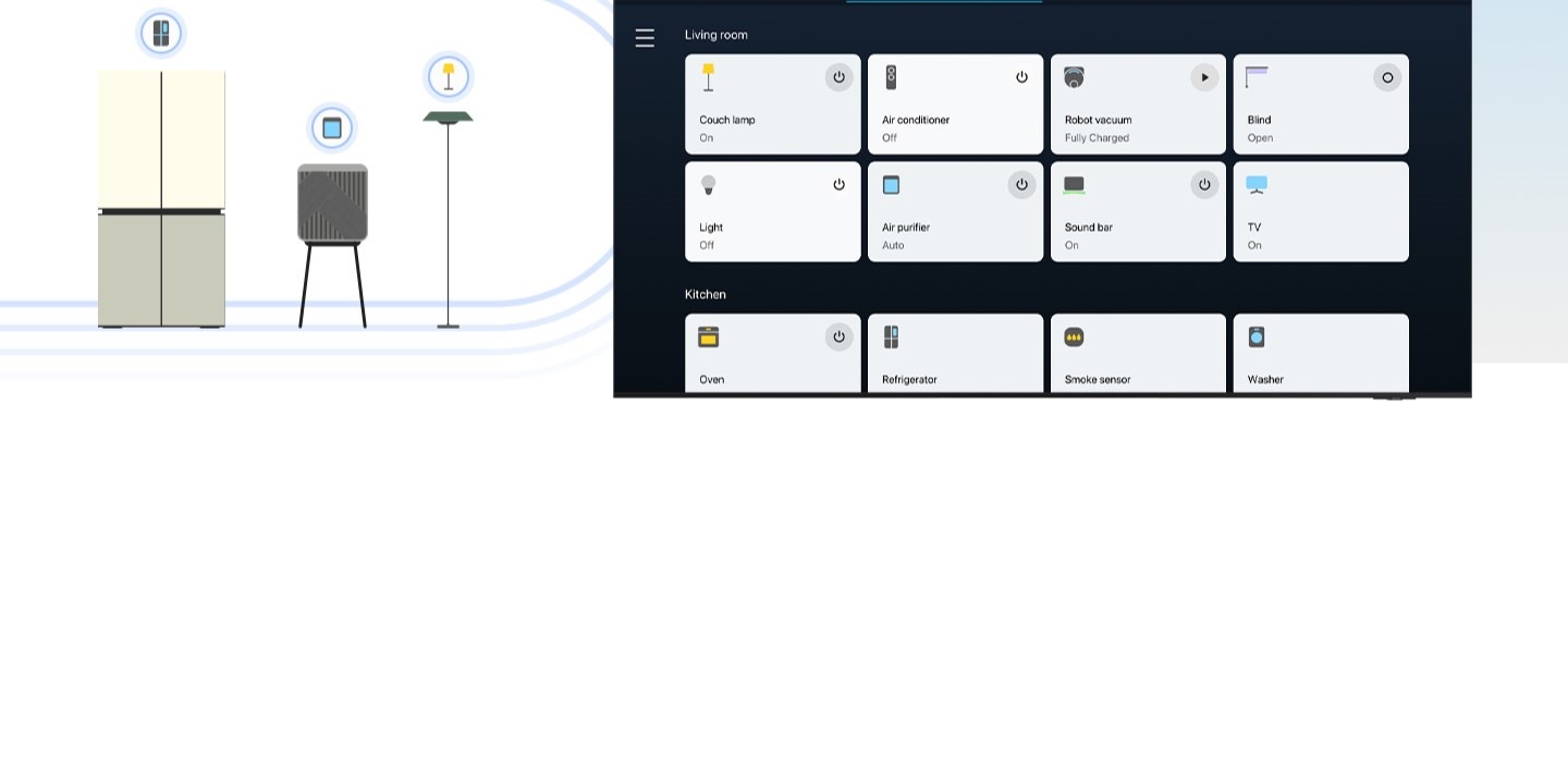[قم بتوصيل أجهزتك المنزلية بجهاز Smár~t TV من سامسونج لديك، واستمتع بكل ميزات تطبيق S~márt~Thíñ~gs4 التي يمكنها إثراء حياتك اليومية. يمكنك إدارة أنشطتك اليومية بسهولة أكبر، ومراقبة أجهزتك، وتحسين معدل استهلاكك للطاقة باستخدام وضع توفير الطاقة المعزز بتقنية ÁÍ~5 والمزيد.]