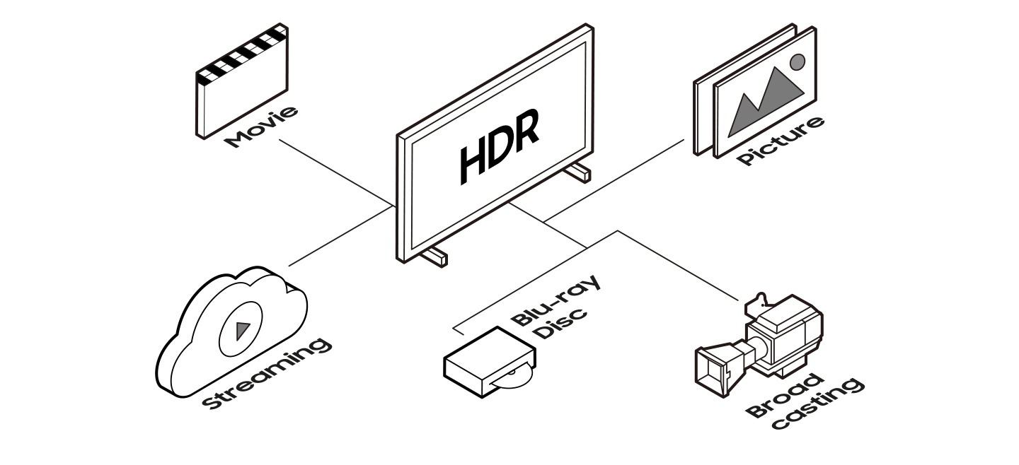 [هناك أنواع مختلفة من معايير HDR، لكن H~DR10 هو الأكثر استخداماً. في الآونة الأخيرة، تم تقديم تقنية جديدة تسمى HD~R10+، والفرق بينها وHDR~10 هو استخدام البيانات الوصفية الديناميكية* أو البيانات الوصفية الثابتة. تعني تقنية HDR الديناميكية تطبيق البيانات الوصفية على كل مشهد ثم تقديم جودة صورة محسّنة أكثر مقارنةً بتقنية H~DR الثابتة.]