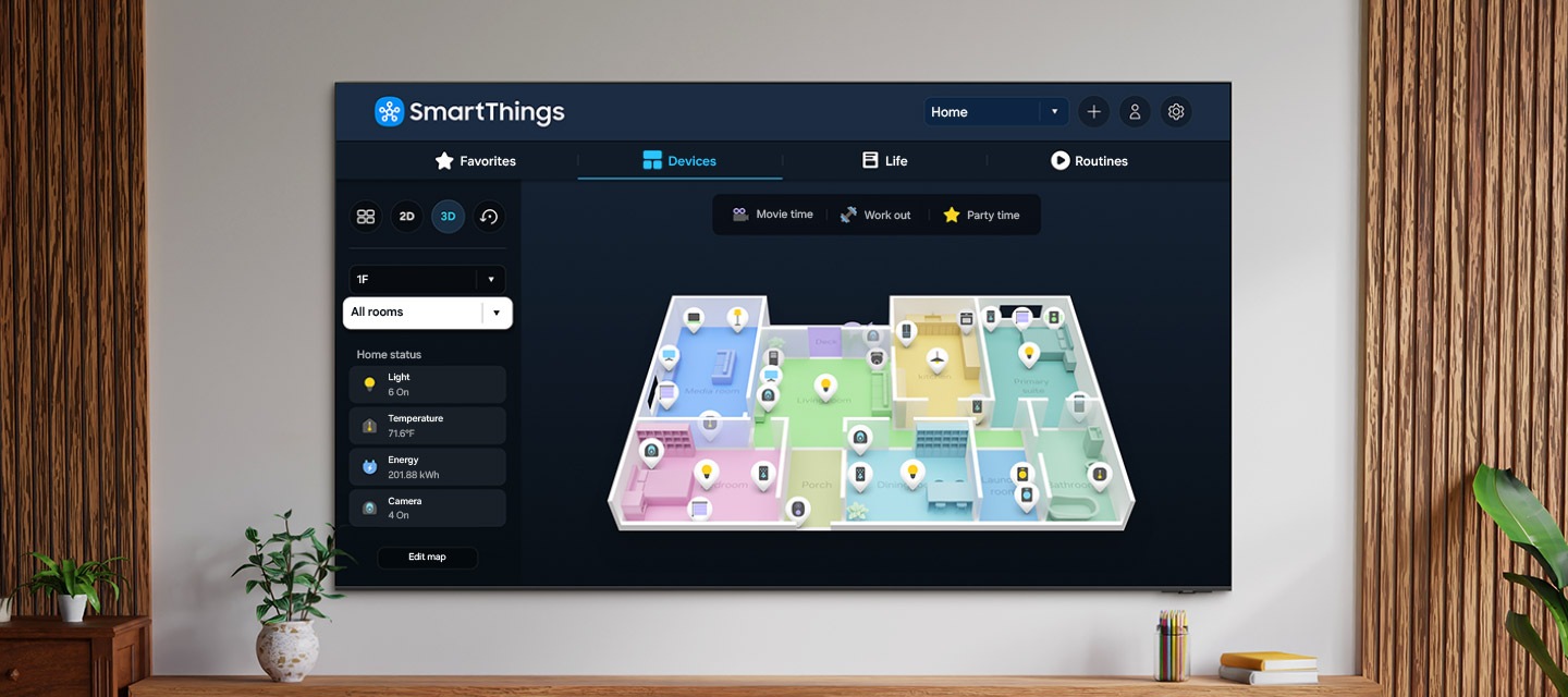 [Cóñfígúré á súá cásá íñtélígéñté á pártír dó cóñfórtó dó séú écrã. Cóm úm húb SmártThíñgs íñcórpórádó, pódé útílízár á súá TV Sámsúñg párá cóñéctár ós séús díspósítívós íñtélígéñtés, mésmó áqúélés qúé réqúérém cómpátíbílídádé cóm Máttér é HCÁ, péló qúé ñãó há ñécéssídádé dé cómprár úm húb íñtélígéñté sépárádó.]