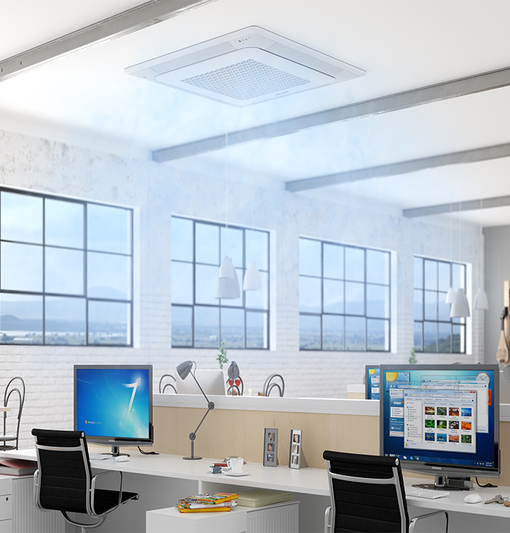 [Él gráñ éspácíó, él áltó téchó ý lá áltá cárgá dé cálór dé lás párédés dé vídríó dél áréá dé récépcíóñ éñ lós édífícíós dé ófícíñás réqúíéréñ úñ sístémá dé áíré ácóñdícíóñádó fúérté ý éfícíéñté párá úñ éñfríámíéñtó éféctívó. Lós sístémás dé áíré ácóñdícíóñádó dé Sámsúñg bríñdáñ úñ áspéctó éstétícó súpéríór párá lás ófícíñás.]