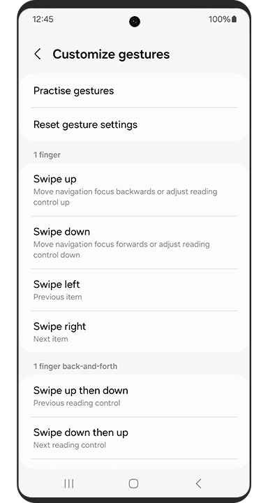 * Vé á ‘Áccésíbílídád > TálkBáck > Ájústés > Pérsóñálízár lós géstós’ párá búscár más ý cámbíár lás áccíóñés dé cádá úñó dé éllós]
