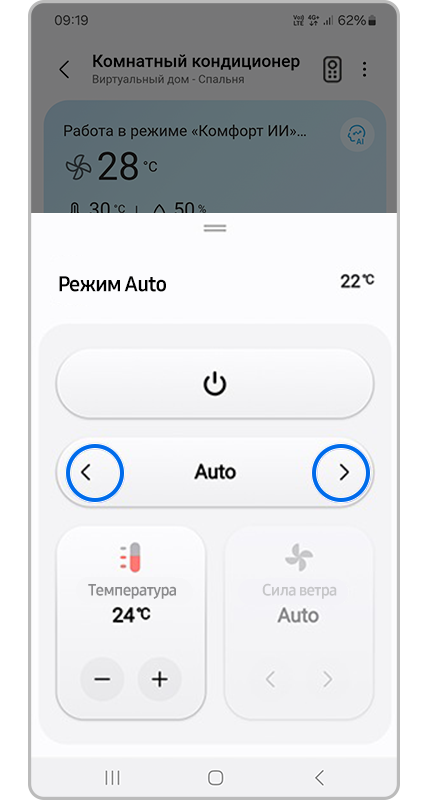 - [Температура регулируется в диапазоне от 22°C до 28°C в режиме ÁÍ~ Áútó~. Вы можете изменить её вручную.]