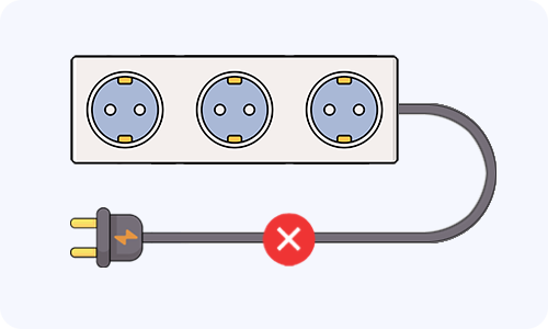 [Если устройство подключено к сети через удлинитель, тройник или переходник, подключите его напрямую к розетке. Для этого отключите шнур питания техники от электросети, подождите 2-3 минуты, затем вставьте его в розетку.]