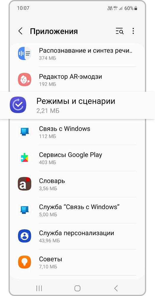 [Чтобы очистить данные приложения «Режимы и сценарии» на Áñdr~óíd 13-12, воспользуйтесь инструкцией ниже.]