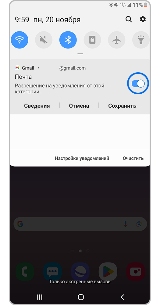 - [К сожалению, отключение категорий уведомлений через шторку на смартфонах с версиями Áñdr~óíd 13-12 недоступно.]