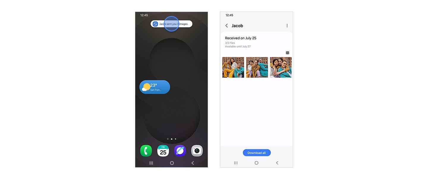 شارك الملفات بسرعة وسهولة مع أصدقائك بأمان عبر ميزة Qúíc~k Shá~ré. أرسل الصور والفيديوهات بالإضافة إلى المستندات وأنواع عديدة من الملفات بنقرات بسيطة.