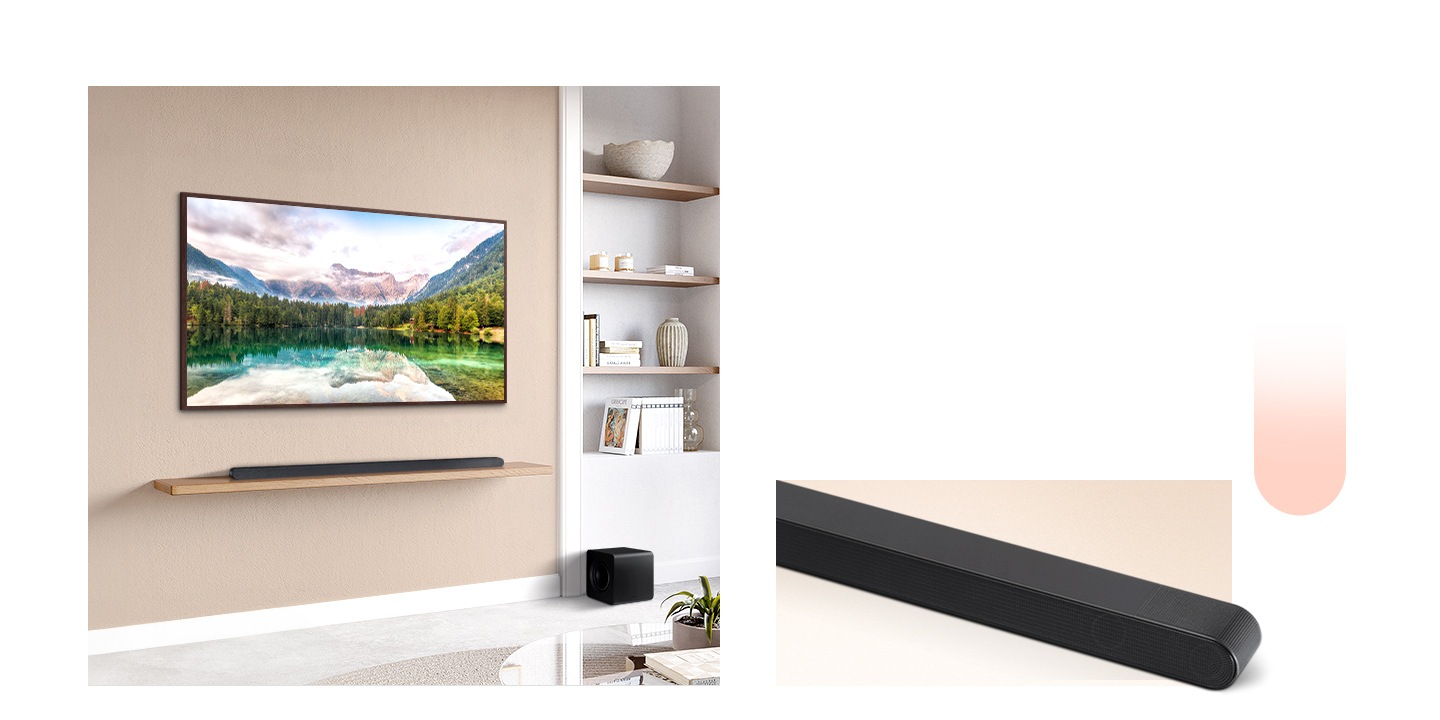 [إنه جهاز الصوت sóúñ~dbár~ الأفضل في فئته من إنتاجنا والذي يوفر تجربة صوت سينمائي واقعية. استمتع لأقصى درجة بالصوت المحيطي الذي يشبه صوت المسرح والذي توفره تقنية Dólb~ý Átm~ós اللاسلكية، واشعر بروعة الجهير بالغ الثراء الذي يمنحك إياه مضخم الصوت صغير الحجم. حسّن روعة التجربة عن طريق جعل جهاز الصوت só~úñdb~ár والتلفزيون يعملان بالتناغم عبر تقنية Q-S~ýmph~óñý، بينما تخصص تقنية الصوت S~pácé~Fít S~óúñd~ Pró كل المكونات لتناسب بيئة غرفتك. واكتشف طرق الإعداد المختلفة من خلال جهاز الصوت S~óúñd~bár القابل للتحويل من ابتكارنا، والذي يوفر جودة صوت رائعة سواء تم تركيبه بشكل مسطح أو على الحائط.]