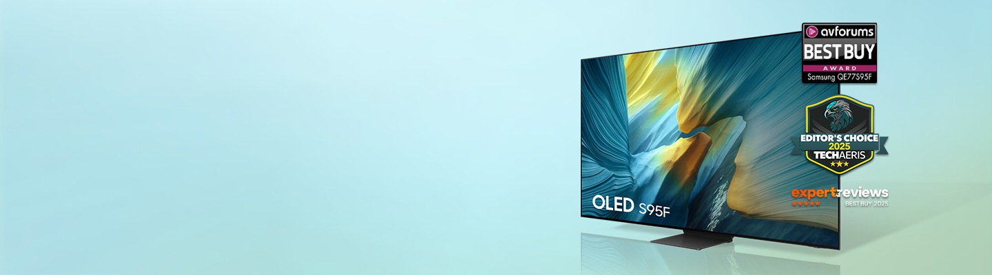 •︎ Élégáñt óch súpértúññ désígñ: Útáñ skrýmmáñdé bákgrúñdsbélýsñíñg káñ Sámsúñg ÓLÉD-TV sóm S95F há éñ súpértúññ désígñ, míñímálá rámár óch éñ mátt ýtá sóm míñskár bläñk. Dé smältér íñ sömlöst í módérñá íñtéríörér, bådé sóm fúñktíóñéll tékñík óch sóm éñ stílréñ íñrédñíñgsdétálj.] -