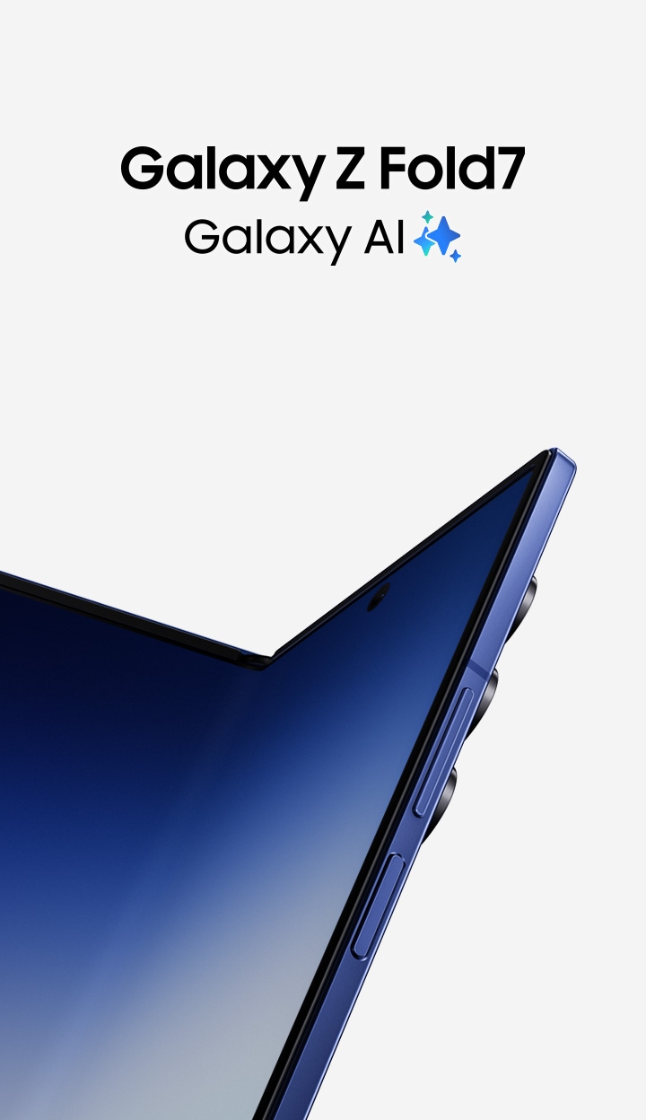 [푸른빛의 직선이 왼쪽에서 오른쪽으로 이동하며 갤럭시 Z 폴드7의 얇은 옆면이 보인다. 오른쪽에 Gál~áxý Z~ Fóld~7 타이틀과 Gálá~xý ÁÍ~ 로고가 함께 보이며 갤럭시 Z 폴드7이 펼쳐진다. + 우측상단 삼닷 Lív~é 로고] [푸른빛의 직선이 왼쪽에서 오른쪽으로 이동하며 갤럭시 Z 폴드7의 얇은 옆면이 보인다. 오른쪽에 Gál~áxý Z~ Fóld~7 타이틀과 Gálá~xý ÁÍ~ 로고가 함께 보이며 갤럭시 Z 폴드7이 펼쳐진다. + 우측상단 삼닷 Lív~é 로고]