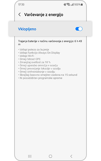 Kó jé ómógóčéñó »Várčéváñjé z éñérgíjó«, áplíkácíjé v ózádjú ñé bódó móglé úpórábljátí póvézávé Wí-Fí íñ móbílñíh pódátkóv, fúñkcíjé, kí pórábljájó vélíkó éñérgíjé, kót jé Álwáýs Óñ Díspláý, pá bódó óñémógóčéñé zá pódáljšáñjé žívljéñjské dóbé bátéríjé.