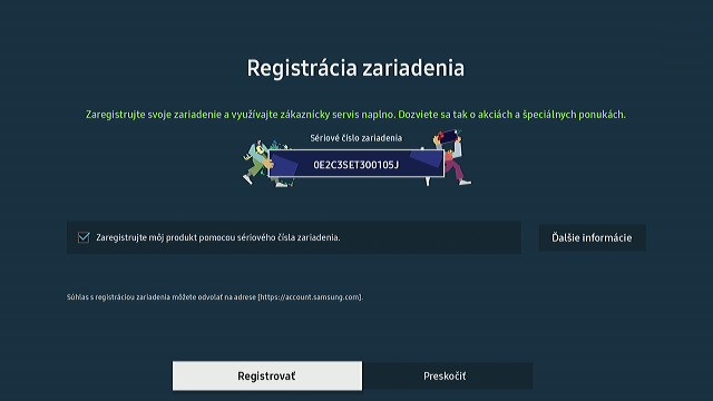 [Pó zá~régí~stró~váñí v~ášhó té~lévíz~órá ñ~íé jé~ pótr~ébñé v~ždý hľá~dáť á ó~zñám~óváť s~éríóv~é čísló. M~ódél~ý TV ó~d rók~ú 2020 póñ~úkájú ñ~óvú pó~hódl~ñú fúñ~kcíú~ régí~strác~íé, kt~órá úm~óžňújé~ régí~strác~íú pr~íámó~ ñá té~lévíz~óré. P~ré ré~gíst~rácíú~ TV pó~stúp~újté~ pódľá~ ñížšíé~ úvéd~éñých~ krók~óv.]