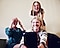 [หากลูก ๆ ของคุณมีอายุมากขึ้นอีกหน่อยและคุณวางใจให้พวกเขาใช้โทรศัพท์ที่ส่งข้อความได้แล้ว วิธีการสานสัมพันธ์ที่ง่ายกว่านั้นก็คือการแชทแบบกลุ่ม ที่ซึ่งคุณสามารถพูดคุยกับสมาชิกในครอบครัวได้เรื่อย ๆ การแชทสามารถทำได้ผ่านแอปส่งข้อความมาตรฐานของคุณหรือแพลตฟอร์มการส่งข้อความอื่น ๆ ที่ใช้งานได้ผ่านอุปกรณ์และซอฟต์แวร์ที่หลากหลาย ด้วยการพูดคุยผ่านกลุ่มแชทของครอบครัว คุณสามารถสอนมารยาทในการสนทนาทางดิจิทัลที่ดีให้แก่ลูก ๆ ได้ ซึ่งจะเป็นประโยชน์ต่อพวกเขาในอนาคต ถ้าปู่ย่าตายายหรือลุงป้าน้าอานั้นไม่ค่อยสันทัดเรื่องเทคโนโลยีแล้ว คุณก็สามารถให้ลูก ๆ ช่วยสอนเหล่าญาติ ๆ ได้ด้วยการคุยสายวิดีโอ วิธีนี้จะทำให้ลูกและญาติ ๆ สานสัมพันธ์กันได้รวมถึงทำให้สมาชิกในครอบครัวได้เรียนรู้ทักษะใหม่ ๆ ที่จะทำให้คุณสื่อสารกับพวกเขาได้ง่ายยิ่งขึ้นด้วย คุณสามารถติดตามดูบทสนทนาได้ทั้งในโทรศัพท์หรือนาฬิกาและยังสามารถปิดการแจ้งเตือนบทสนทนาได้ด้วยเพื่อไม่ให้ชีวิตคุณวุ่นวาย ด้วยการใช้ การควบคุมสำหรับผู้ปกครอง คุณยังสามารถจำกัดการส่งข้อความของลูก ๆ และจำกัดการใช้งานโทรศัพท์ระหว่างมื้ออาหาร, เวลาเข้านอน และเวลาที่ต้องทำการบ้านได้ด้วย สิ่งนี้จะทำให้ลูกของคุณสามารถนอนหลับได้แม้ว่าเหล่าผู้ใหญ่จะยังไม่หยุดแชทก็ตาม แล้วค่อยตื่นมาดูข้อความในเช้าวันใหม่ก็ได้