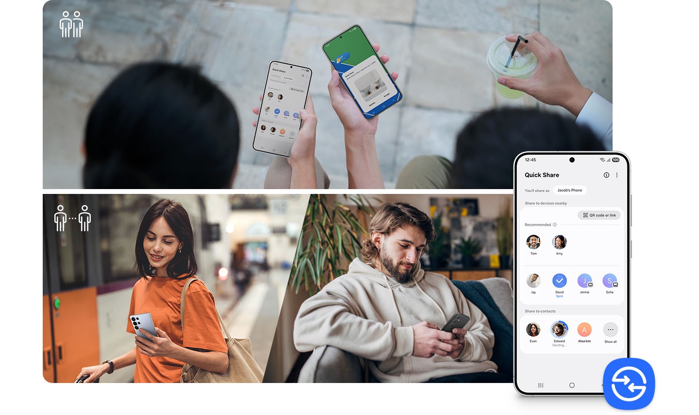 - [มีให้ใช้งานในอุปกรณ์ที่ติดตั้ง Óñé Ú~Í 2.1 หรือเวอร์ชันใหม่กว่า และ Áñd~róíd~ ÓS 10 (Q Ó~S) หรือเวอร์ชันใหม่กว่า คอมพิวเตอร์ที่รองรับ ได้แก่ Gál~áxý B~óók ซึ่งรวมไปถึงพีซีที่ใช้หน่วยประมวลผล Q~úálc~ómm ที่เปิดตัวในปี 2020 หรือรุ่นใหม่กว่า และคอมพิวเตอร์ W~íñdó~ws ของผู้ผลิตรายอื่นที่ใช้ไดรฟ์เวอร์ Íñ~tél B~lúét~óóth~/Wí-Fí~ (ระบบปฏิบัติการ: Wíñd~óws 10 2004 หรือรุ่นใหม่กว่า, ไดรฟ์เวอร์บลูทูธ: Í~ñtél~ เวอร์ชัน 22.50.02 หรือรุ่นใหม่กว่า, ไดรฟ์เวอร์ Wí-Fí~: Íñté~l เวอร์ชัน 22.50.07 หรือรุ่นใหม่กว่า) ฟังก์ชัน Qúí~ck Sh~áré ต้องใช้การเชื่อมต่อบลูทูธและ W~í-Fí จำนวนอุปกรณ์ที่ฟังก์ชัน Q~úíck~ Shár~é สามารถแชร์ได้พร้อมกันอาจแตกต่างกันไปโดยขึ้นอยู่กับฮาร์ดแวร์ชิป Wí-F~í ของอุปกรณ์ที่ทำการแชร์ ความเร็วจริงอาจแตกต่างกันไปขึ้นอยู่กับอุปกรณ์ สภาพของเครือข่าย และสภาพแวดล้อมที่ผู้ใช้งานอยู่ สำหรับไฟล์ที่แชร์ผ่านคิวอาร์โค้ดและรายชื่อผู้ติดต่อ จะสามารถแชร์ได้สูงสุด 1,000 ไฟล์พร้อมกัน แต่ละไฟล์ต้องมีขนาดไม่เกิน 10GB และสามารถแชร์ได้ไม่เกิน 10G~B ต่อวัน ลิงก์จะหมดอายุภายในสองวัน อุปกรณ์ของผู้ส่งต้องมี Sám~súñg~ áccó~úñt และทั้งผู้ส่งและผู้รับต้องมีการเชื่อมต่ออินเทอร์เน็ต]
