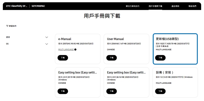 [27吋 Víéw~Fíñí~tý S9 5K~ (S90PC) 要如何更新韌體]