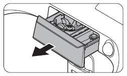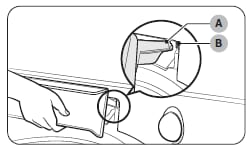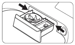 [若要取出,請按壓每一邊的末端同時拉出洗劑盒。]