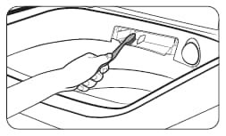[使用小型非金屬的刷子徹底清潔盒子的開口。]