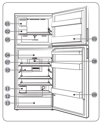 [• 為了最有效地使用能源,請將諸如儲物格、抽屜、層板等所有內部配件放回製造商提供產品時的原位。]