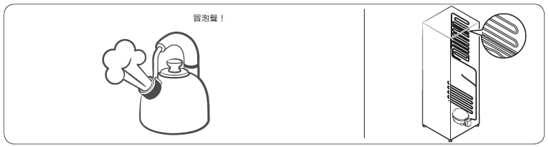 - [冷卻或結凍時,冷媒氣體在密封管道內移動,會產生冒泡聲。]