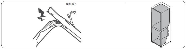 - [冰箱溫度上升或下降時,塑膠零件的收縮和擴張會產生敲擊聲。這類噪音可能在除霜循環或電子零件運作時出現。]