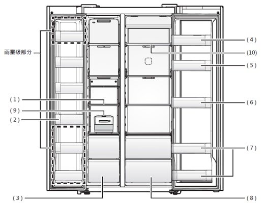 [RH80J 藏鮮愛現系列 825L~ 的產品部位圖]