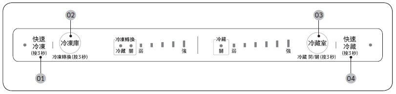 [03 冷藏室 / 冷藏 開/關 (按3秒)]