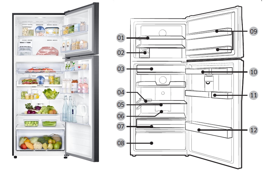 [RT46 雙循環雙門系列的冰箱部位圖]