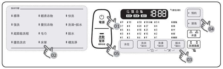 [選擇不同的洗程,如有需要可重複以上步驟 2-3。]