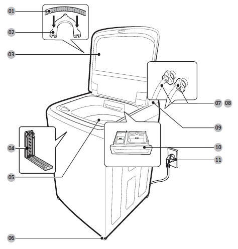 - [上蓋:洗衣機運轉時請確保上蓋關上。]