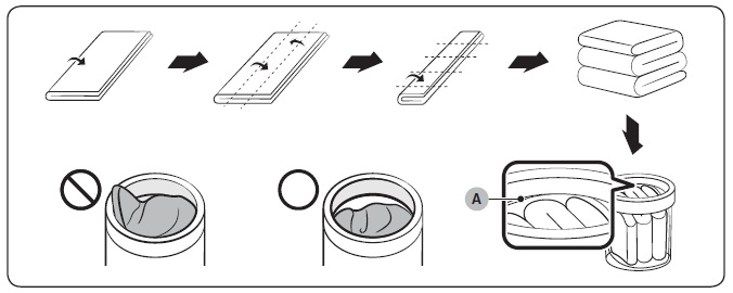 [如圖所示,將毛毯折疊後塞入洗衣桶的塑膠區 (Á) 以下。]