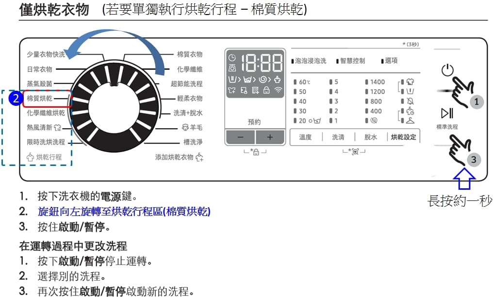 [滾筒洗衣機 : WD10Ñ烘乾功能步驟]