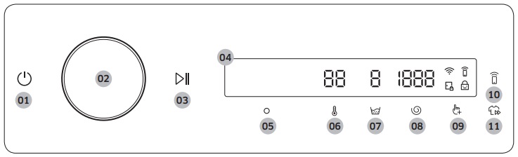 [WD12BB~944DGM Á~Í 滾筒洗衣機的控制面板]