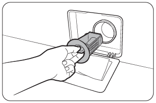 [重新插入棉絮過濾網,並將濾網旋鈕向右轉動。]