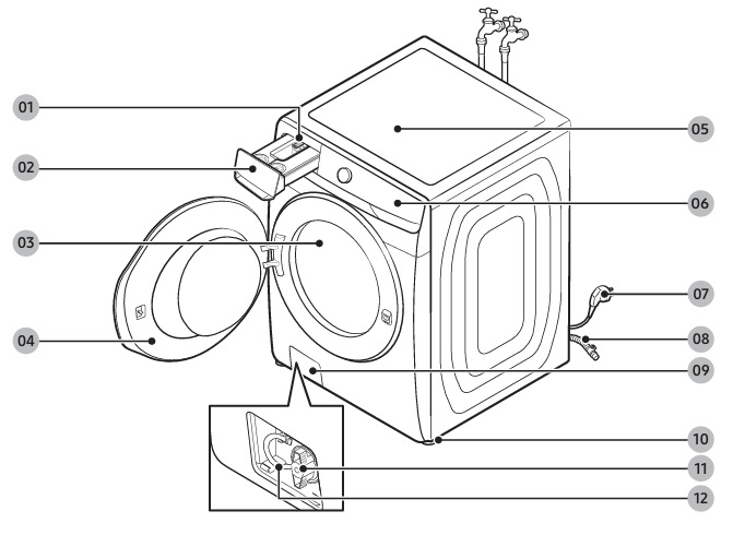 [舖設地毯和膠貼地板無法展現良好的防震動效果,可能會導致洗衣機震動和在脫水期間輕微移動。]